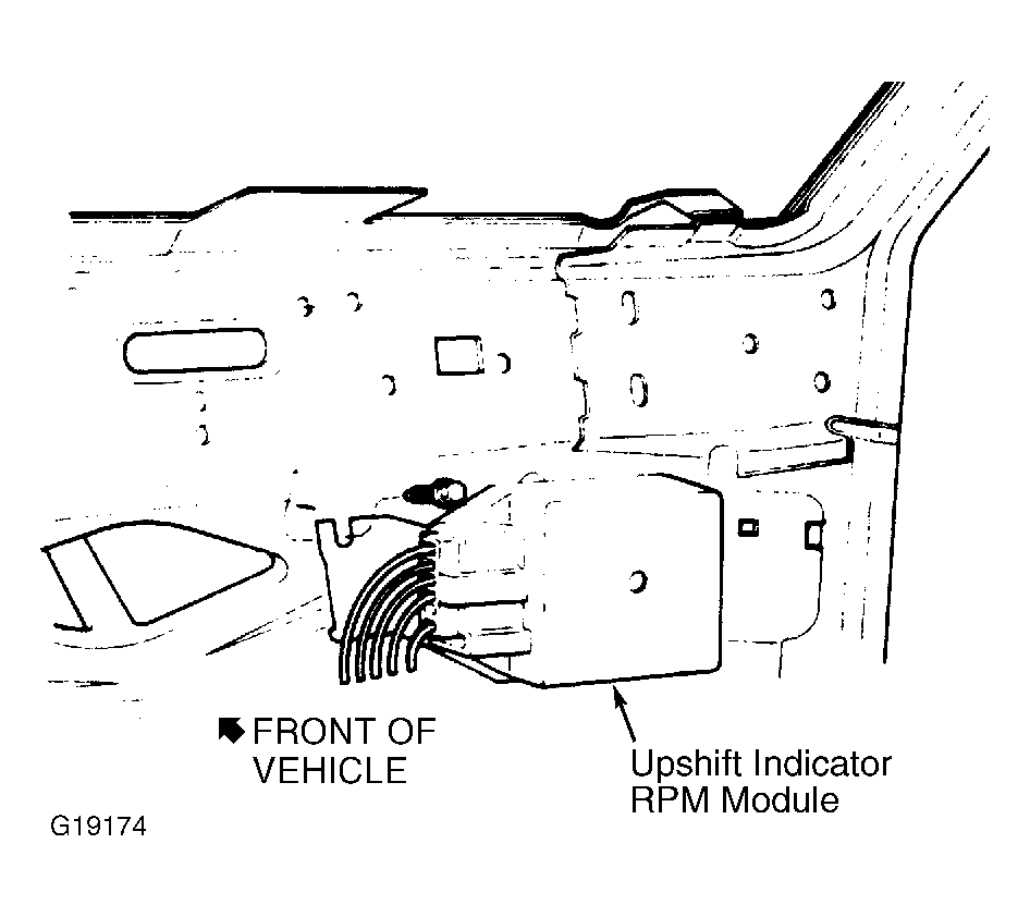 | Upshift Indicator RPM Module | Behind glove box. See Figure. |