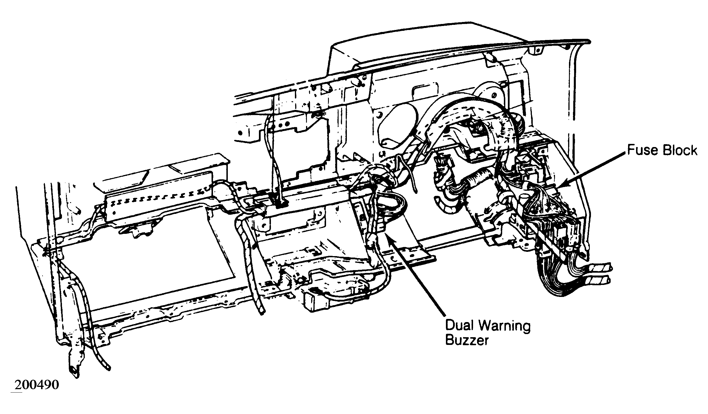 | Dual Warning Buzzer | Near radio, behind center of instrument panel. See Figure. |
