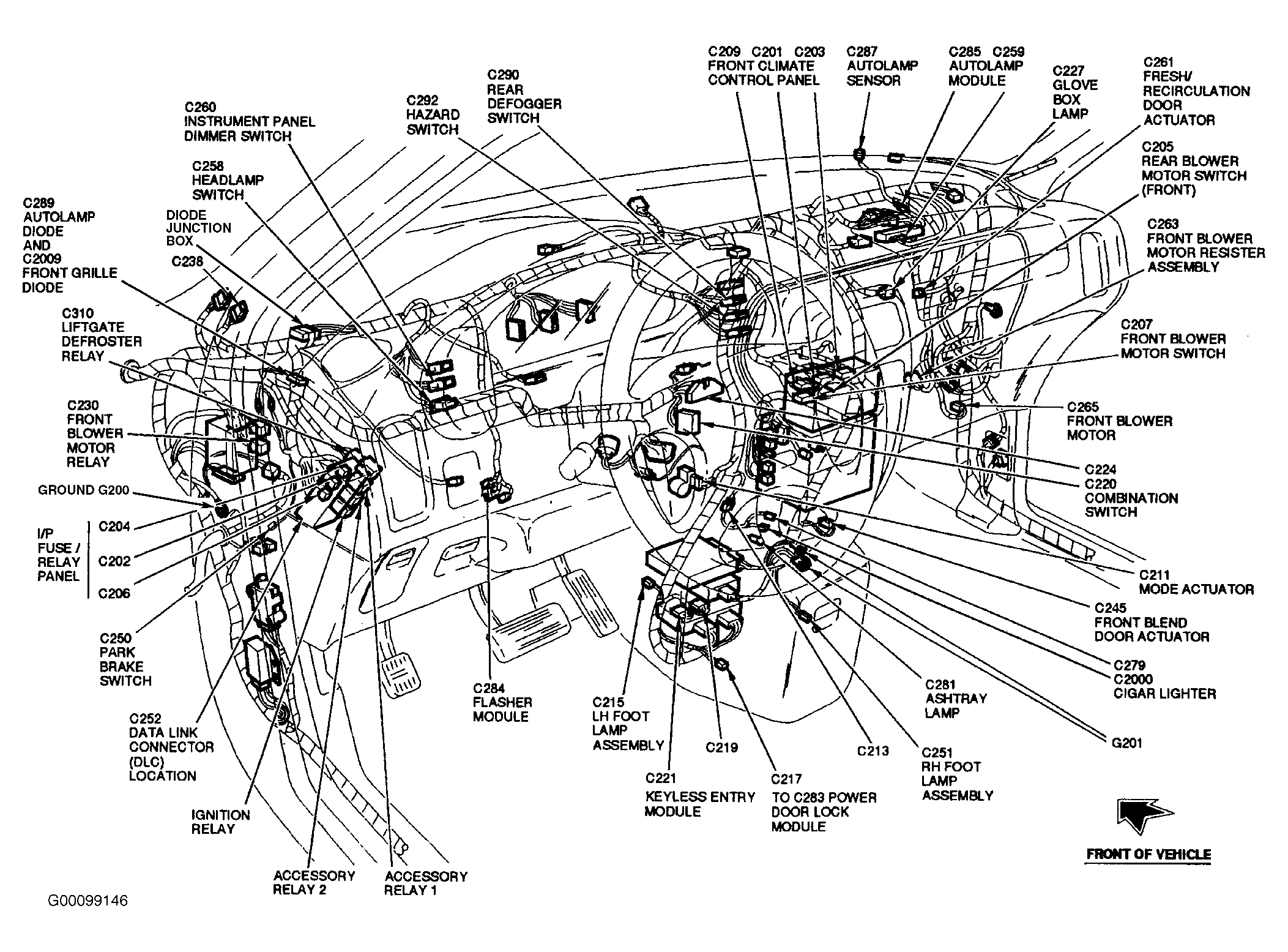 | Ground G200 | Behind Left Side of Instrument Panel, Above Kick Panel. See Fig 1 . |