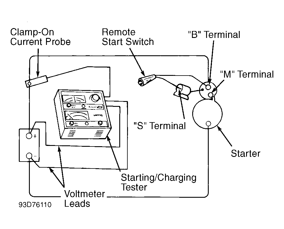 - Secure starter in vise. Connect jumper lead between battery positive post and solenoid terminal "B". Connect remote start switch between battery positive post and solenoid terminal "S". See Fig 1