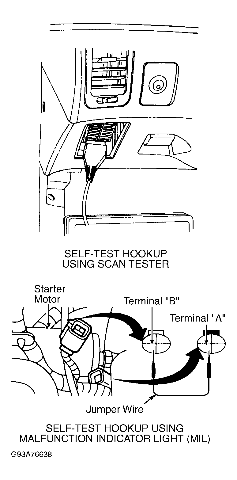Trouble codes are retrieved from EEC system through Data Link Connector (DLC), located behind left side of instrument panel below fuse/relay panel. See Figure . Follow scan tester manufacturer's instructions to retrieve codes.