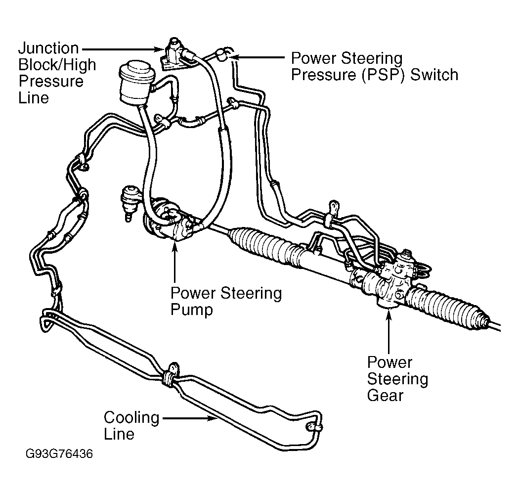 A Power Steering Pressure (PSP) switch is located in the hydraulic line between power steering pump and rack and pinion unit. See Fig 1 . The switch sends a signal to Powertrain Control Module (PCM ) to increase idle speed when necessary.