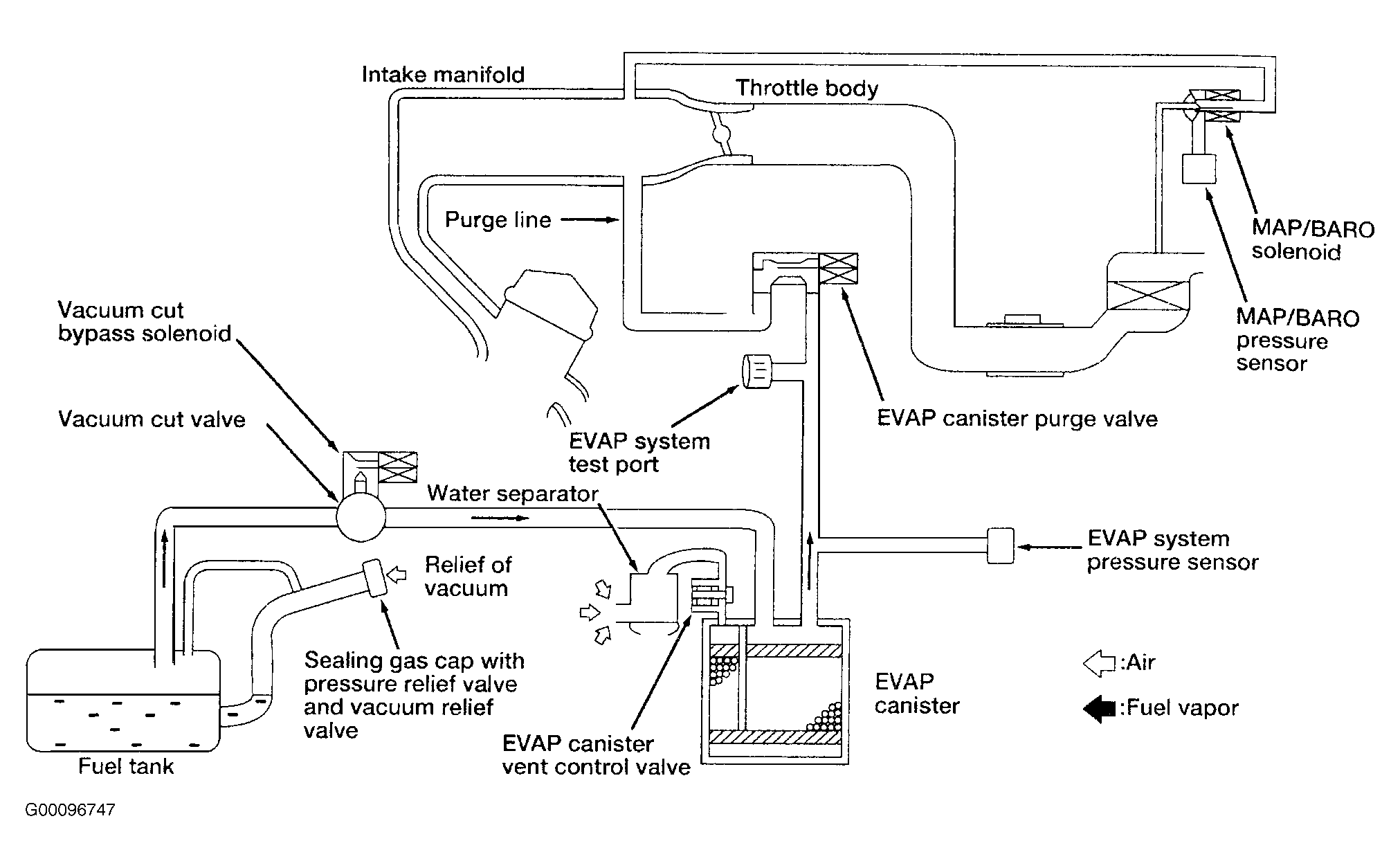 Perform these tests when instructed during QUICK TEST or if directed here from another article or from DIAGNOSTIC TROUBLE CODE DEFINITIONS . Perform appropriate evaporative emission system test. See EVAPORATIVE EMISSIONS DIAGNOSTIC TROUBLE CODE DEFINITIONS . For emission-related symptom tests, see EXCESSIVE FUEL ODOR or HISSING SOUND WHEN REMOVING FUEL CAP under EVAPORATIVE EMISSION SYSTEM TESTS in SYSTEM & COMPONENT TESTING - VILLAGER article.