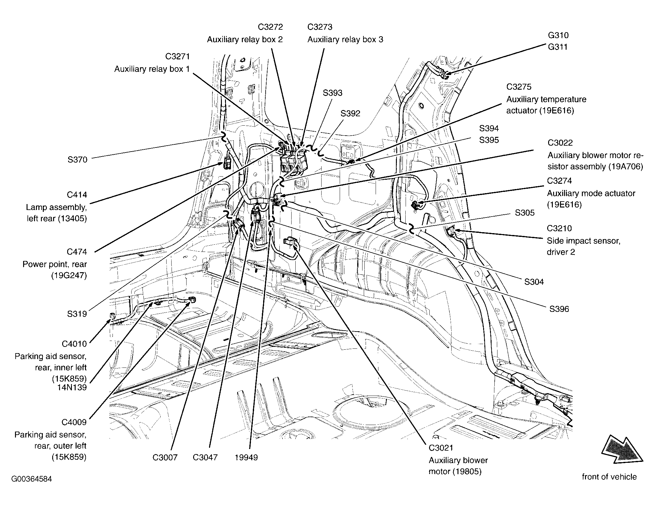 | Auxiliary Relay Box 3 (Freestyle) | Left side of trunk. See Figure. |