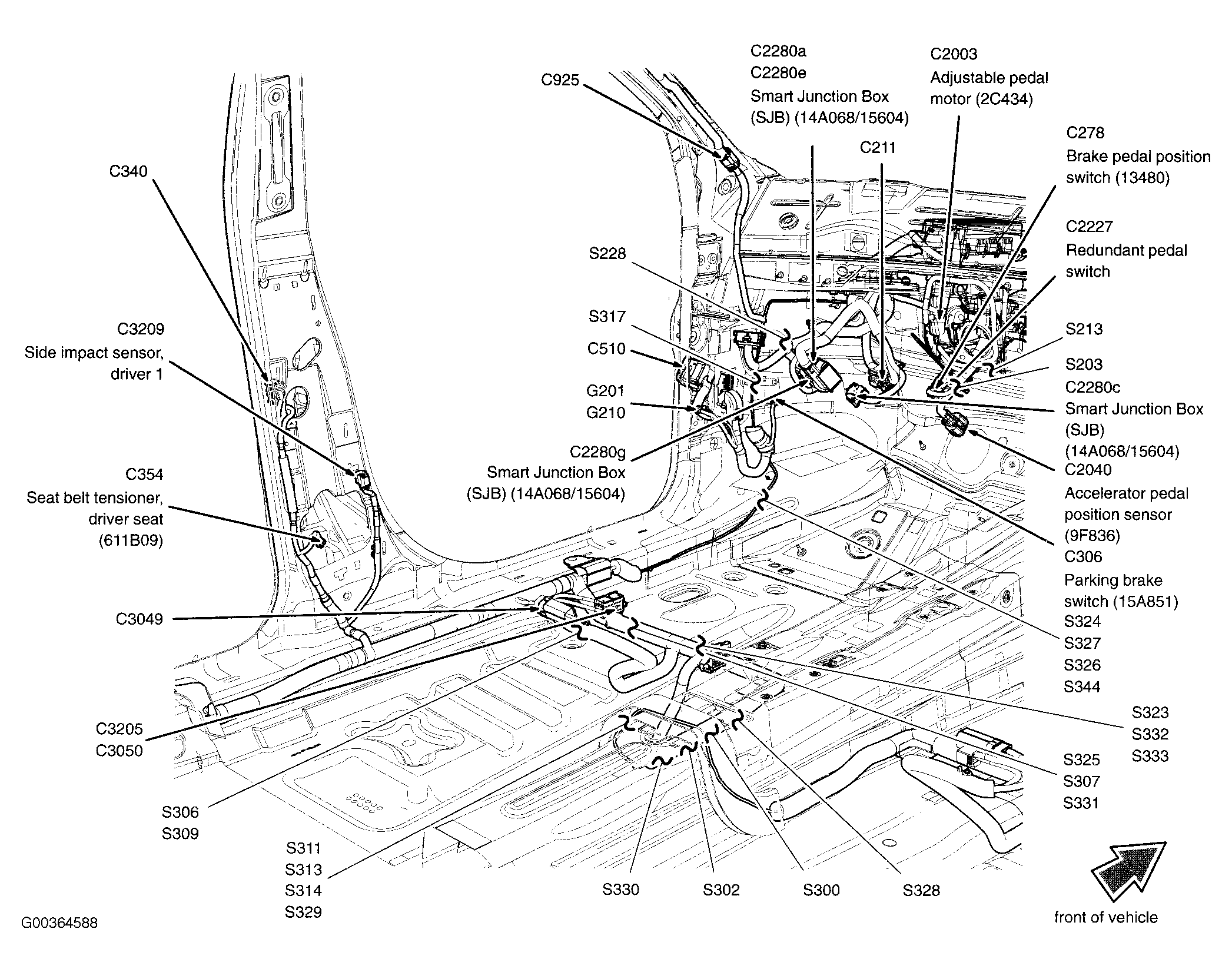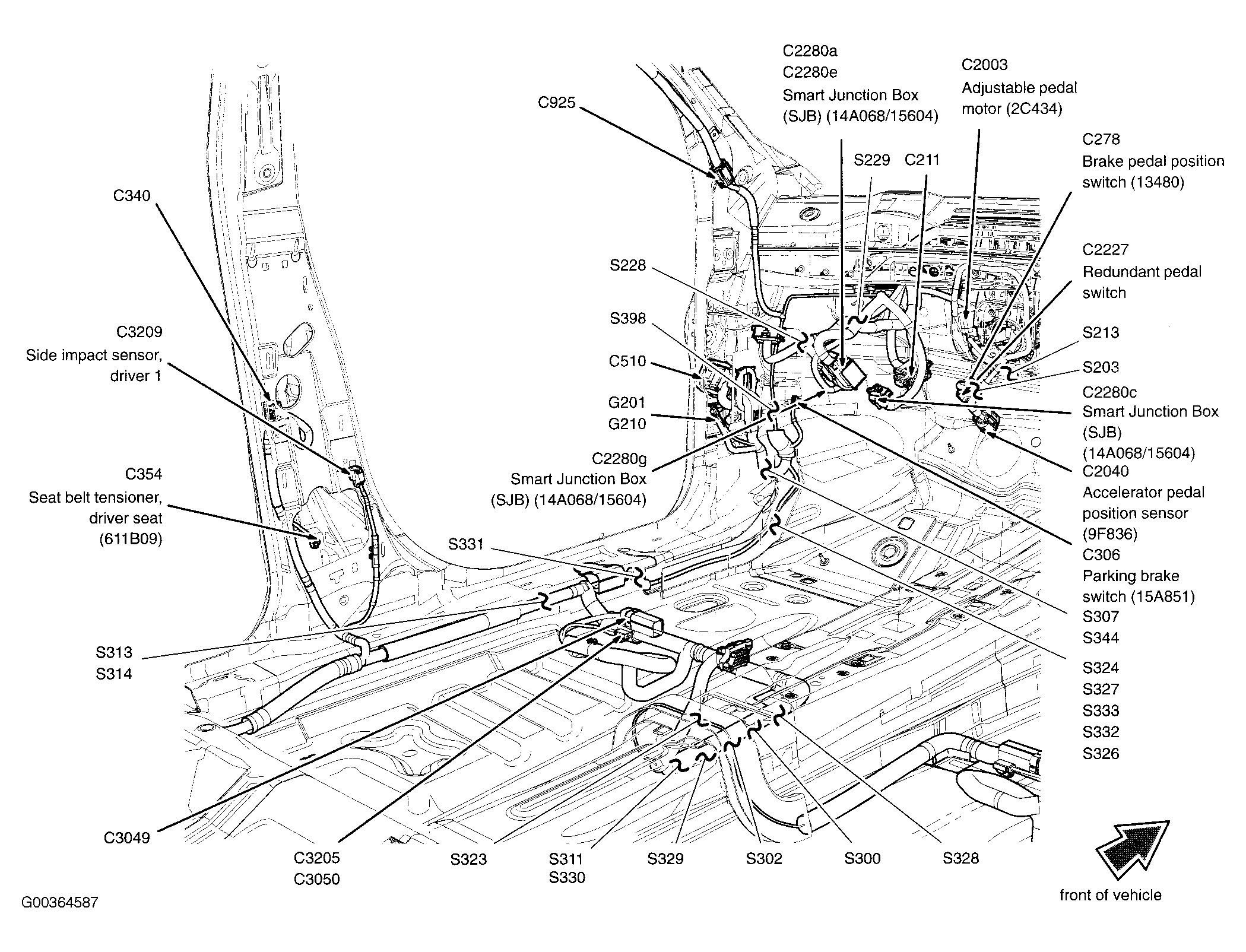 | Smart Junction Box (SJB) (Freestyle) | Left side of dash. See Figure. |