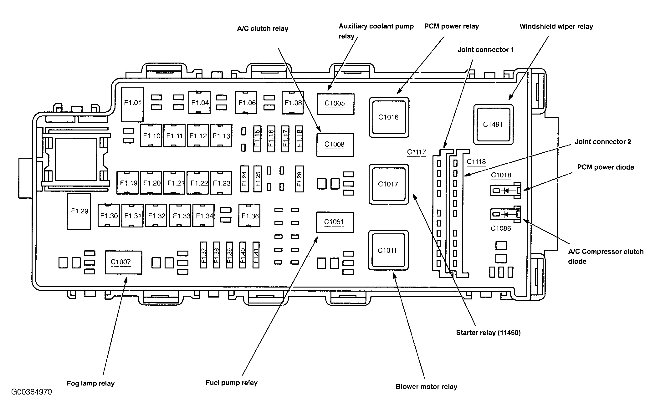 | A/C Compressor Clutch Diode | In battery junction box (BJB). See Figure. |
