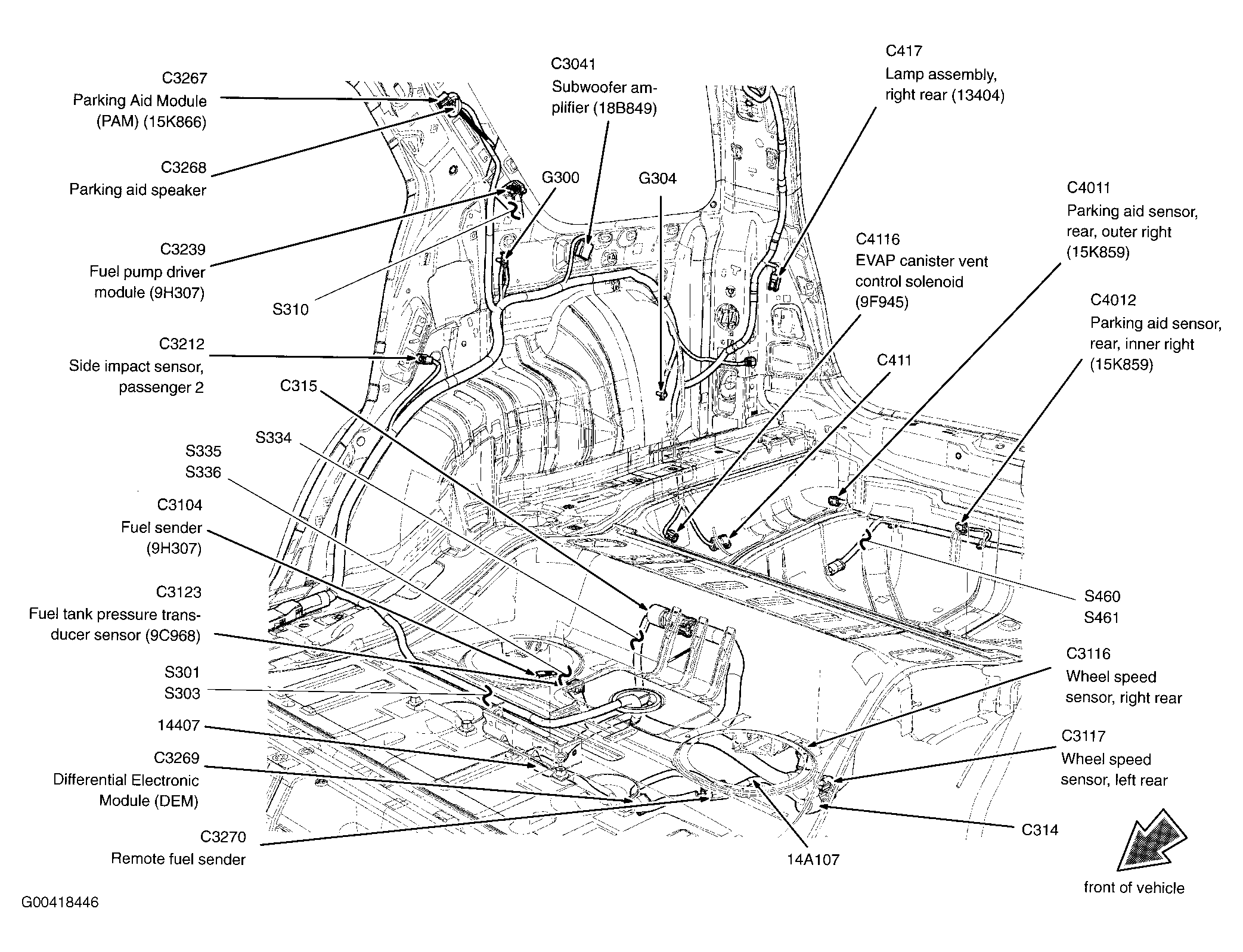 | Differential Electronic Module (DEM) (Five Hundred & Montego) | Near right rear wheel well. See Figure. |