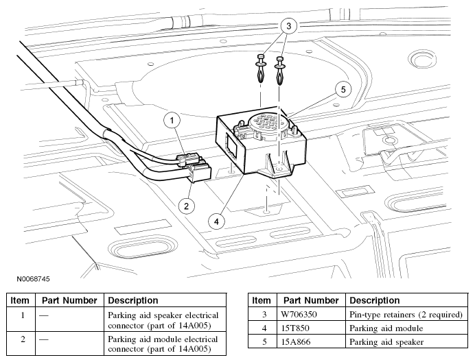 | Parking Aid Module (PAM) (Five Hundred & Montego) | Center front of trunk on package tray trim panel. See Figure and Figure. |