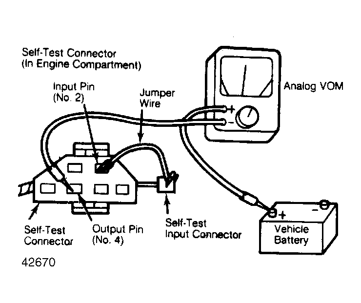 - This is a static check of processor input and output circuits. Connect the STAR tester or VOM to vehicle Self-Test connector, making sure to connect VOM correctly. See Fig 1 . Turn ignition switch to "ON" position to start Self-Test. DO NOT depress throttle during test. Observe and record all On Demand and Continuous/Memory service codes.