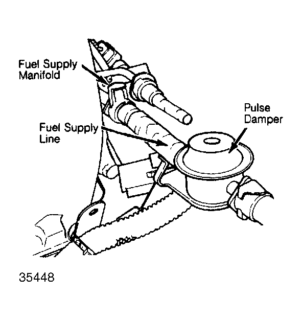 The opening and closing of the fuel injectors generates pulses in the fuel supply manifold. These "pulses" (pressure variations) are smoothed by the pulse damper. The damper is mounted on a bracket behind the upper intake manifold between the fuel supply line and the fuel supply manifold. See Fig 1 .