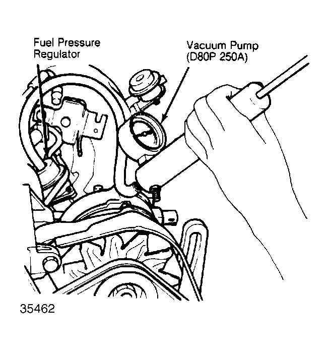 Disconnect vacuum line at the pressure regulator. Connect a hand-operated vacuum pump to the regulator fitting and apply 18 in. Hg vacuum. If the reading does not remain at 18 in. Hg vacuum the regulator diaphragm is leaking. Replace the pressure regulator, if necessary. See Fig 1 .