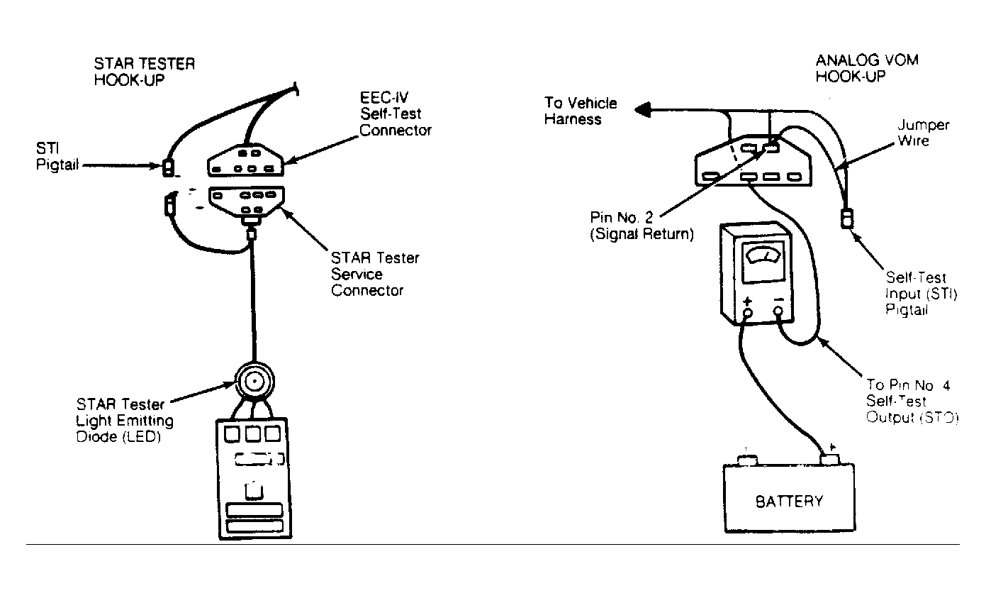 - With key off, connect EGO sensor. Remove air cleaner and prop airflow meter door partially open with wood pencil. Start and run engine at 2000 RPM for 2 minutes. Perform ENGINE RUNNING SELF-TEST . If code 41 is displayed, check for corrosion or damaged pins at ECA connector. If connector is okay, replace ECA and repeat QUICK TEST . If code 41 is not displayed, EGO sensor input circuit is okay, go to step 1).