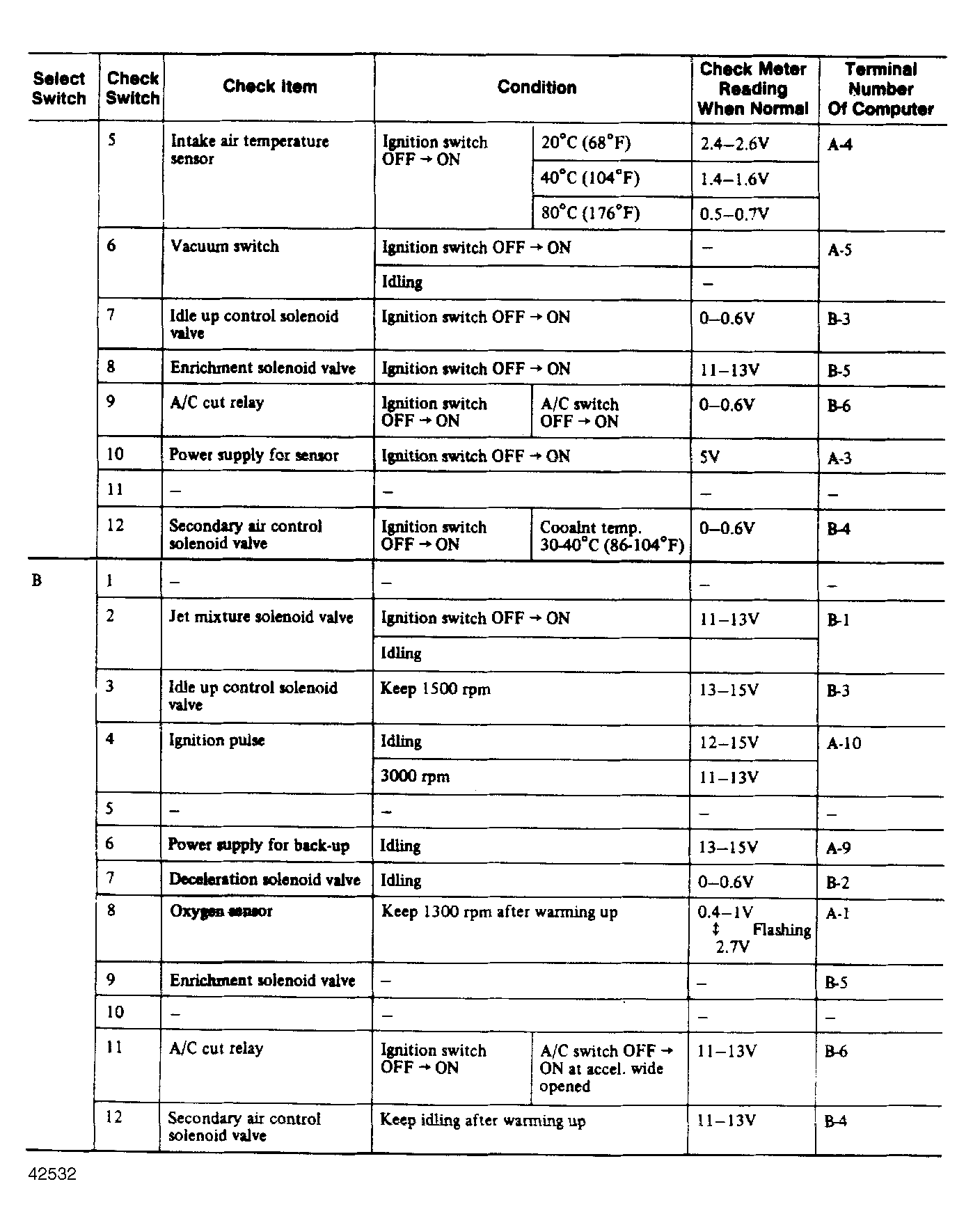 During checks 1 through 12, finish each step quickly and switch off ignition after each step to save current consumption and protect the battery.