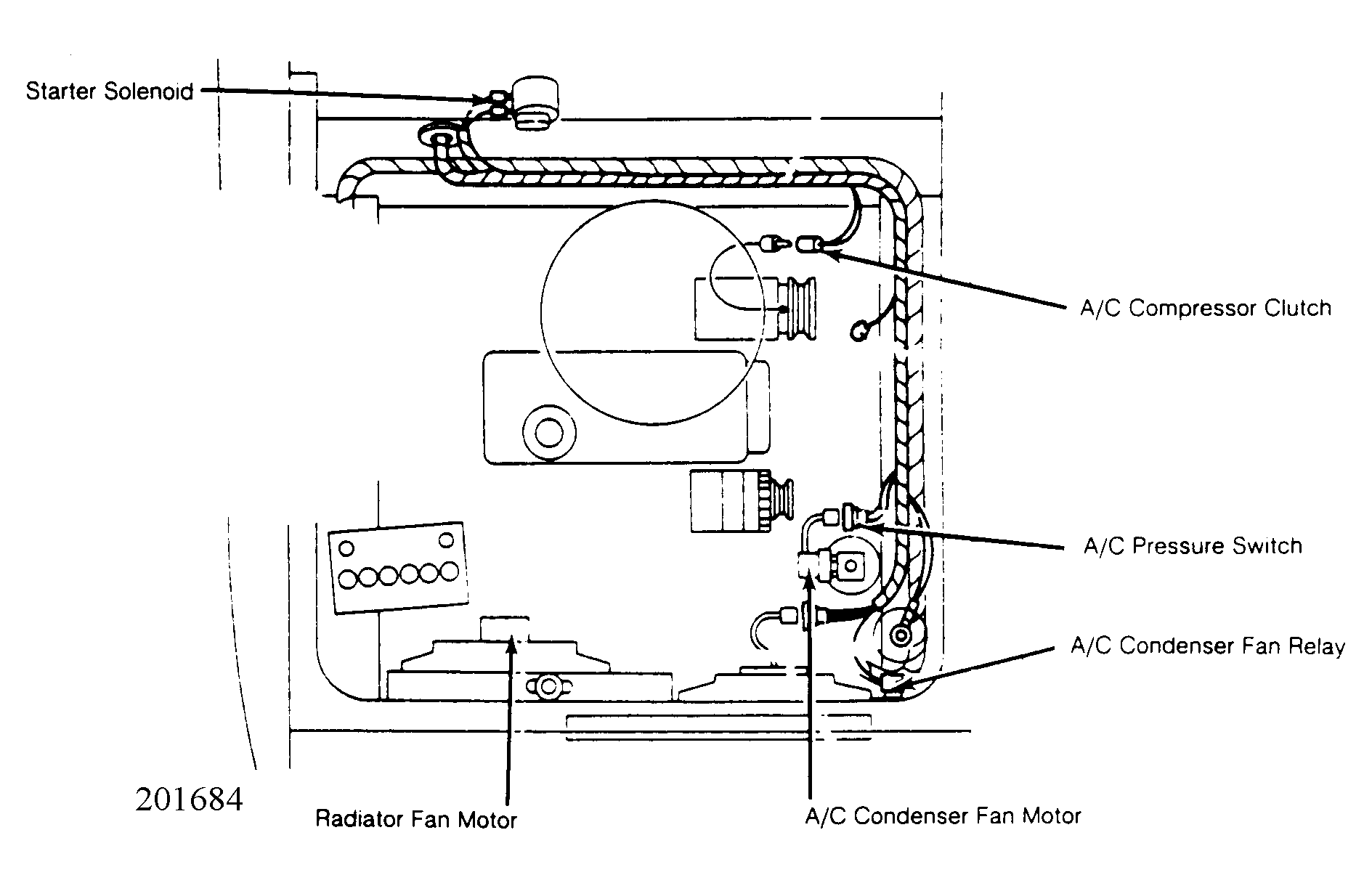 A/C Compressor Clutch In left corner of engine compartment. See Figure & Figure .