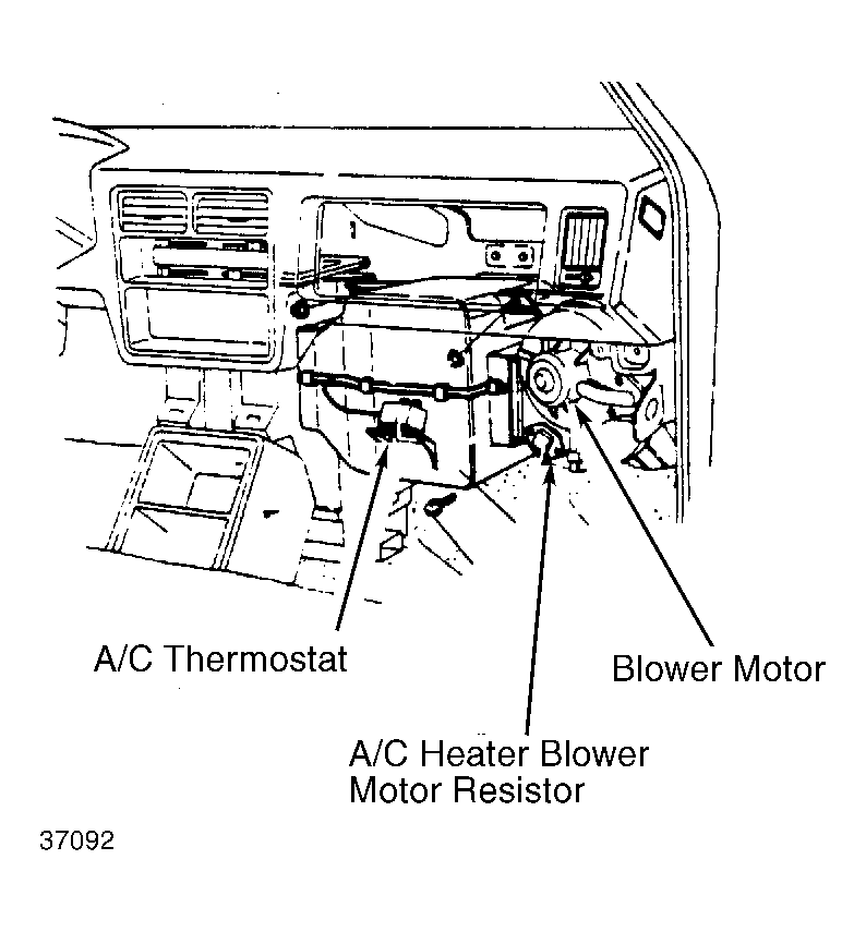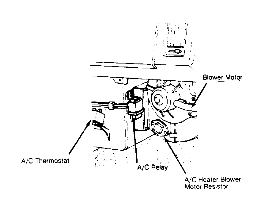 A/C-Heater Blower Motor Resistor Under right side of dash, on blower motor housing. See Figure & Figure .