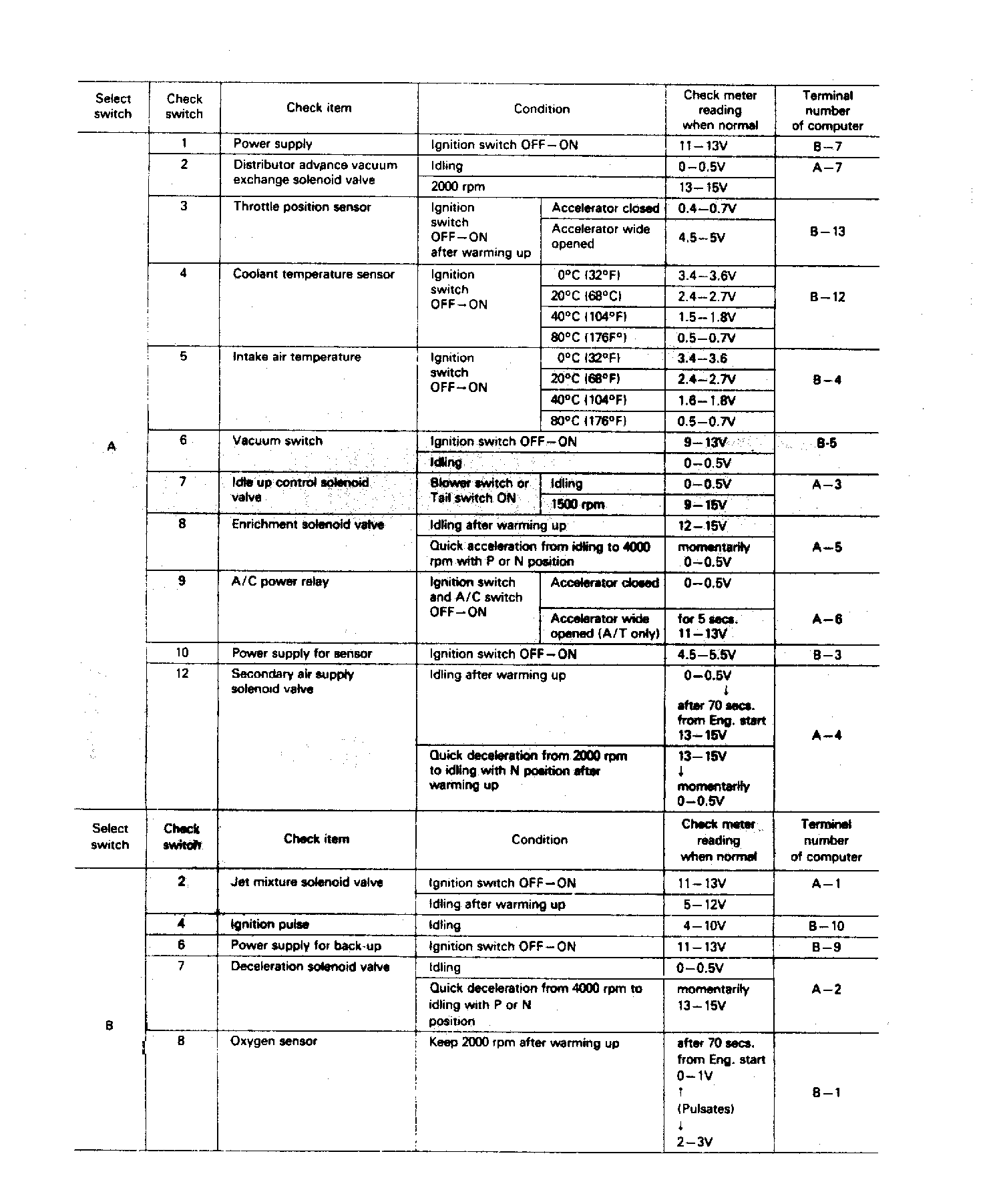 - If checker shows variation from specifications, check defective sensor and electrical wiring. Repair or replace defective components.