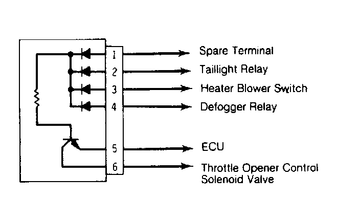 Remove electrical load switch. Check continuity between terminals using an ohmmeter. See Fig 1 . There should be continuity between terminals No. 1, No. 2, No. 3, No. 4 and No. 6 to No. 5. Reverse leads to ensure there is no continuity between terminals. If results are otherwise, replace electrical load switch.