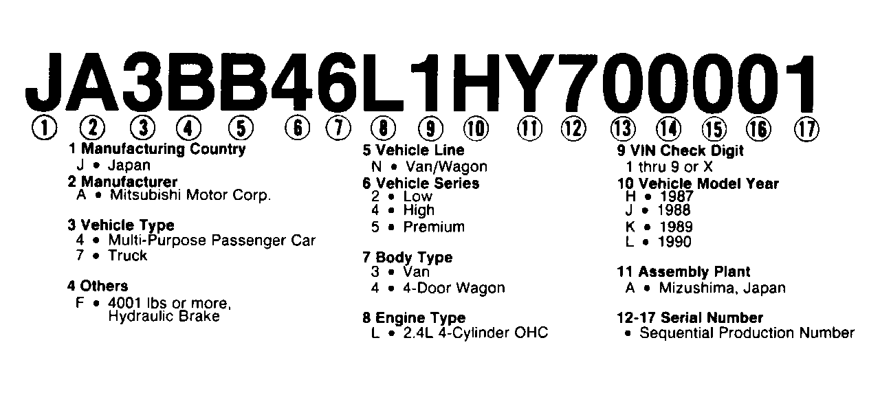 Numbers preceding the explanations in the legend below refer to the sequence of characters as listed on VIN identification label in Fig 1 . The legend listed below will also be found in Fig 1 .