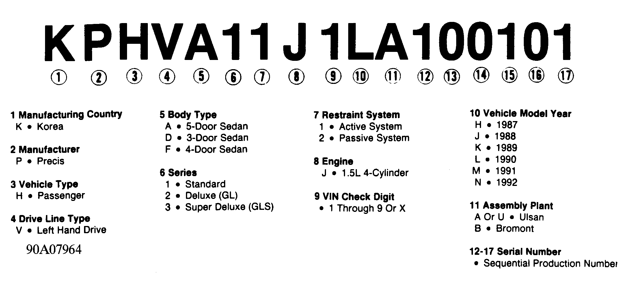 Numbers preceding the explanations in the legend below refer to the sequence of characters as listed on VIN identification label in Fig 1 . The legend listed below will also be found in Fig 1 .