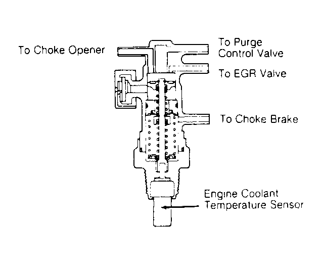 The thermovalve is located at end of EGR vacuum supply line and is sensitive to engine temperature. The thermovalve bleeds off the vacuum signal to the EGR valve during engine warm-up when less NOx is emitted and to improve cold engine driveability. See Fig 1 .