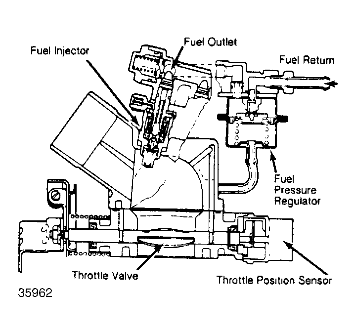 The fuel injection mixer uses fuel injectors and a throttle valve to control air/fuel mixture flow. In addition, the mixing body contains the fuel pressure regulator, ISC servo assembly, pulsation damper and throttle position sensor. See Fig 1 .