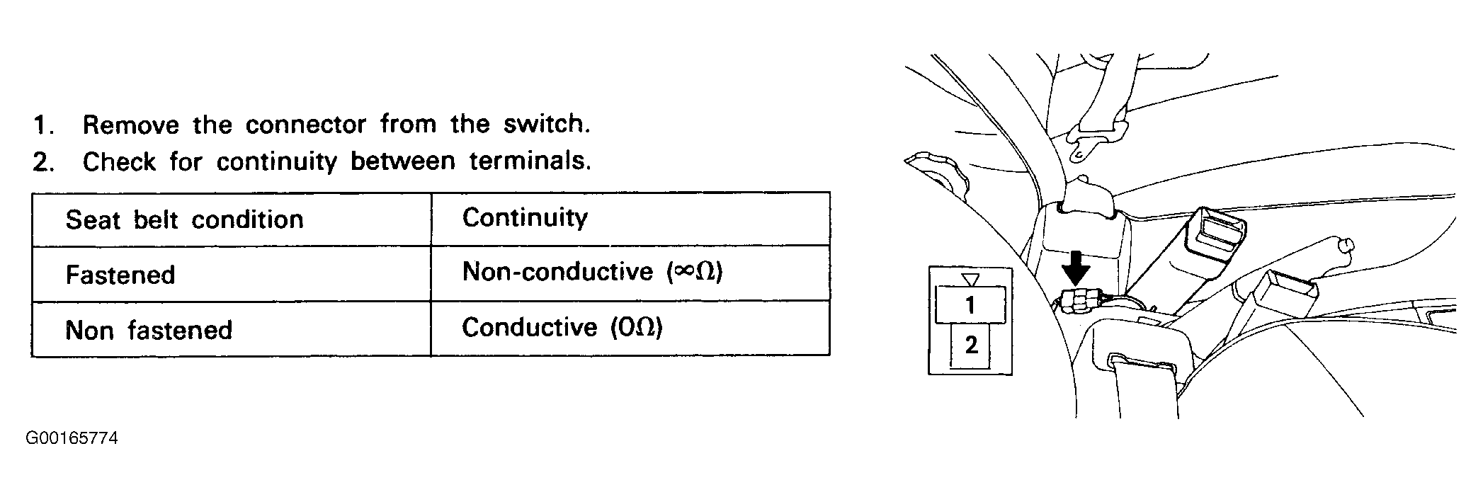 For seat belt switch testing procedure, see