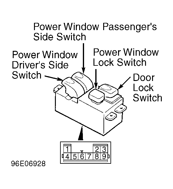 Home >> Mitsubishi >> 1996 >> Eclipse Base, Automatic >> Repair and Diagnosis >> Body & Frame >> Power Windows >> Component Testing >> Power Window Switch