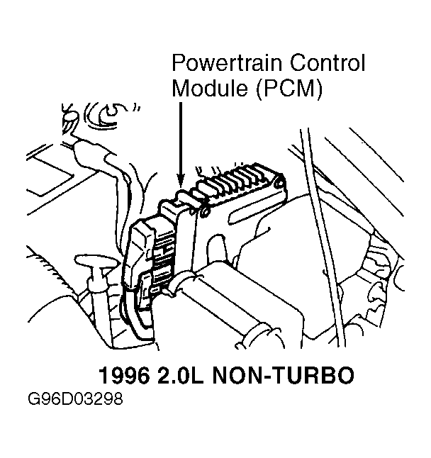 | Powertrain Control Module (PCM) (1996 2.0L Non-Turbo) | Left side of engine compartment. See Figure . |
