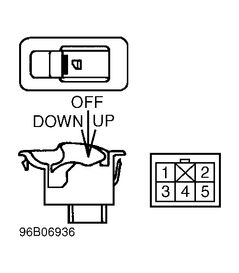 Remove control switch from trim panel. Using ohmmeter, check continuity of switch. See MASTER WINDOW SWITCH CONTINUITY , RIGHT FRONT SIDE WINDOW SWITCH CONTINUITY or REAR DOOR WINDOW SWITCH CONTINUITY . See Fig 1 - Fig 3 . Replace appropriate switch as necessary if switch continuity is not as specified.
