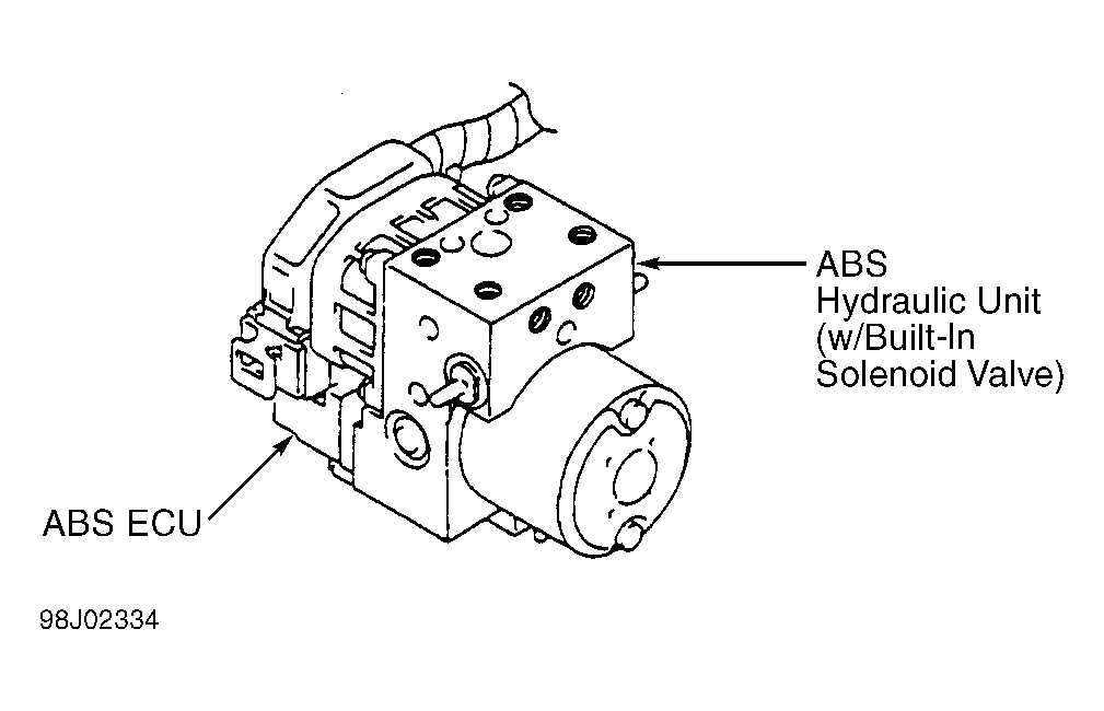 | ABS ECU | Left front corner of engine compartment, on hydraulic unit. See Figure. |