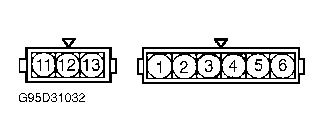 2. Using an analog ohmmeter, check for continuity between terminals No. 4 and 13 of power transistor. Continuity should exist. With positive end of 1.5-volt battery disconnected, there should be no continuity. Replace power transistor if it fails test.