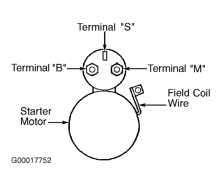 - Disconnect field coil wire from terminal "M" at starter solenoid. See Fig 1 , Fig 2 , Fig 3 or Fig 4 . Connect jumper wire between positive battery terminal of 12-volt battery and terminal "S" of solenoid.