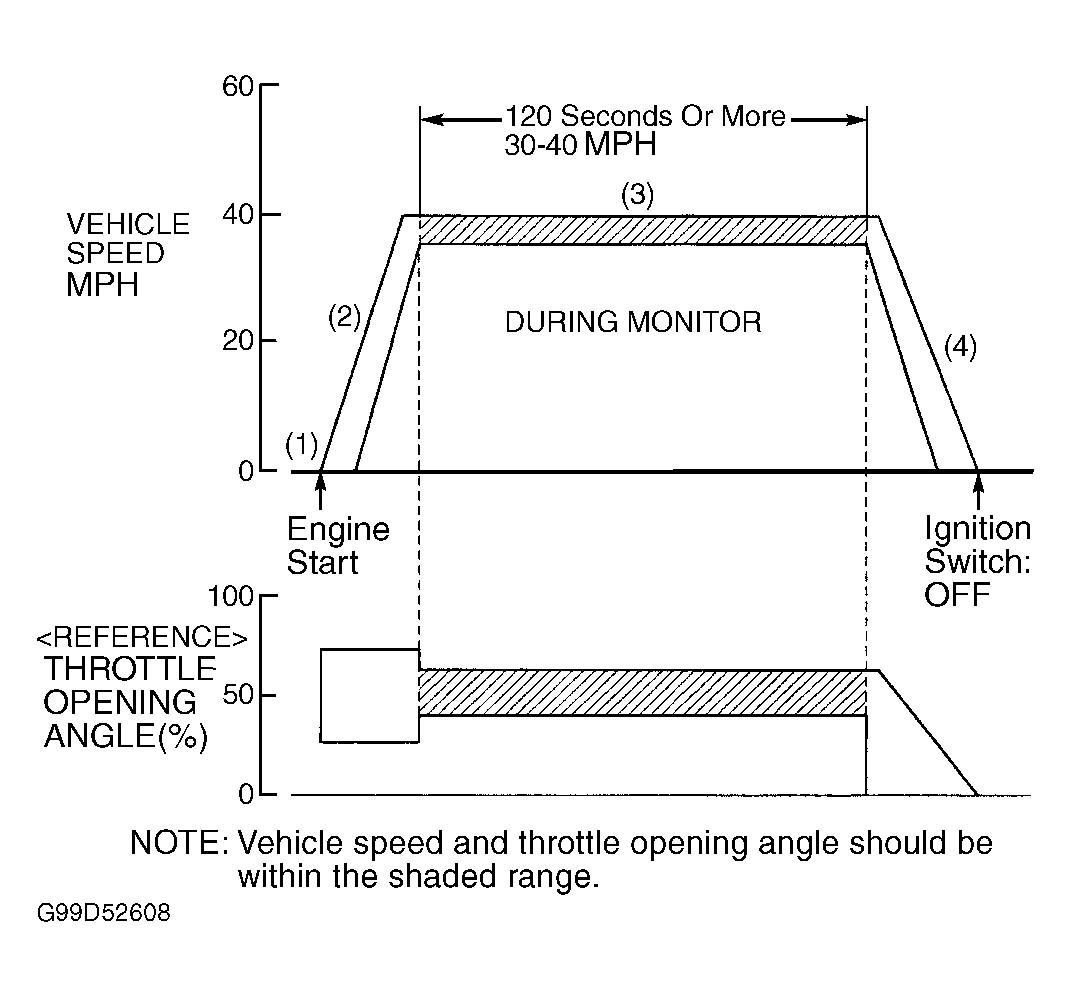 4. While keeping accelerator pedal opening degree constant, keep speed at 35-40 MPH for 120 seconds or more (M/T: 4th gear).