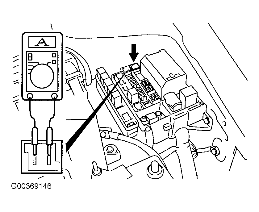 - Remove the power window fuse and connect an ammeter as shown, see Fig 1
