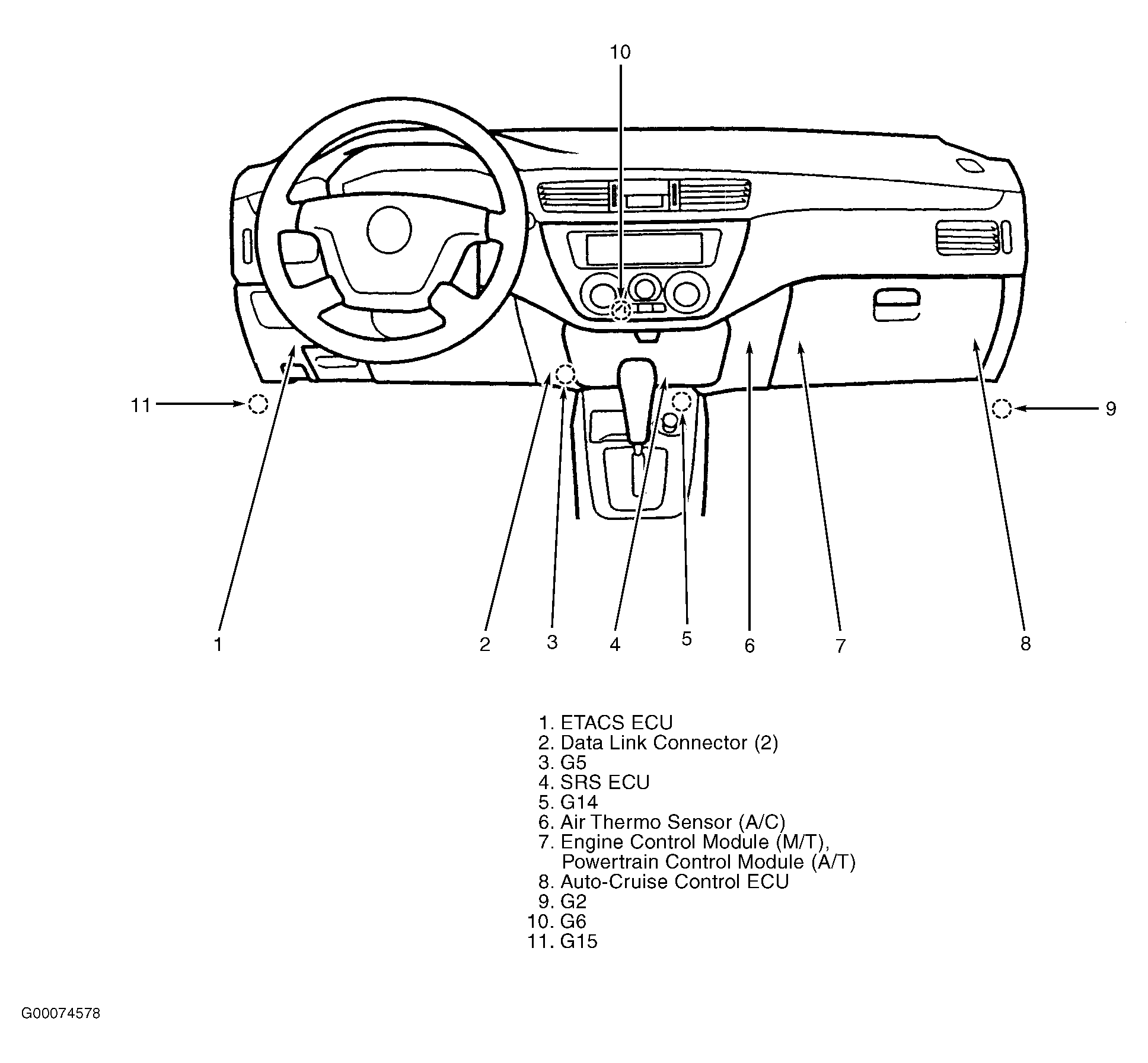 | A/C ECU | Behind center of dash, below radio. |