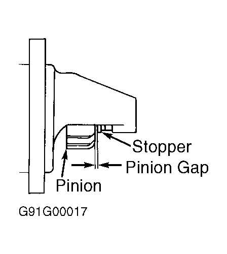 3. Clearance should be within specification. See STARTER SPECIFICATIONS  table. Adjust clearance by adding or removing gaskets between solenoid and front housing.