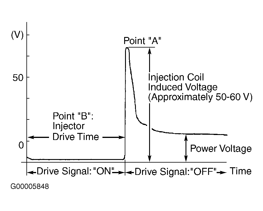 - To test injector circuit, see DTC P0201-P0204: INJECTORS NO. 1-4 CIRCUIT MALFUNCTION or DTC P0201-P0206: INJECTORS NO. 1-6 CIRCUIT MALFUNCTION in appropriate SELF-DIAGNOSTICS article.
