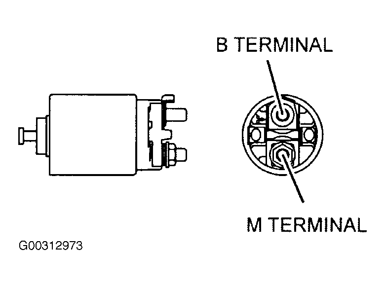 Check that there is no continuity between the "B" terminal and "M" terminal. See Fig 1 . If there is continuity, replace the magnetic switch.