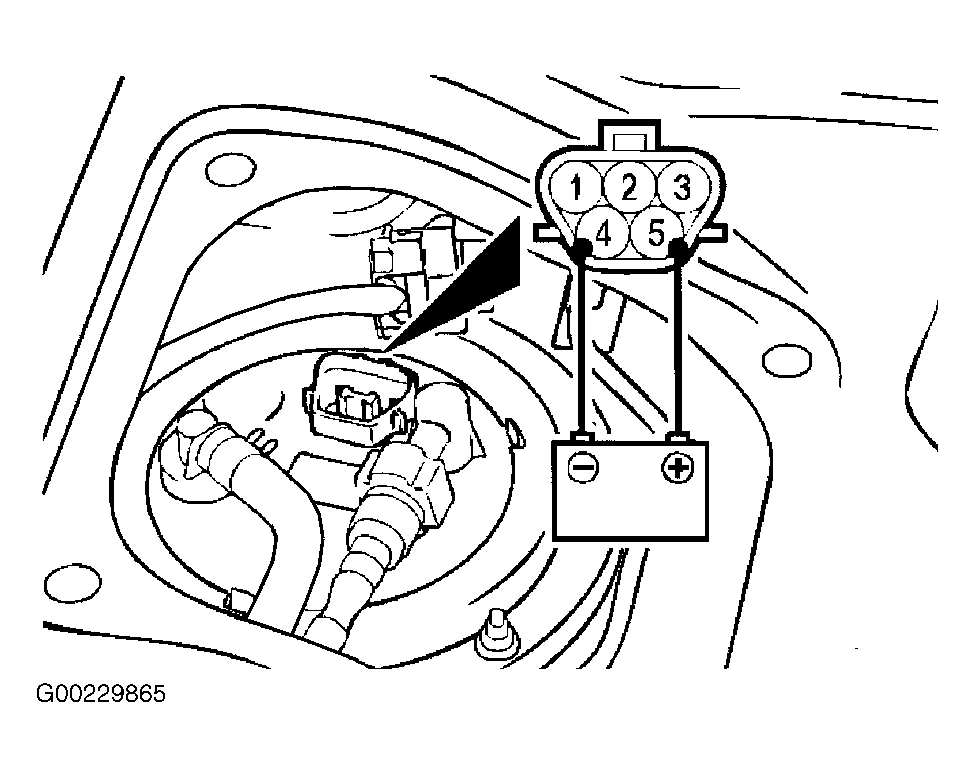 5. When the fuel pump drive connector is attached directly to the battery, check if the sound of the fuel pump operation can be heard.