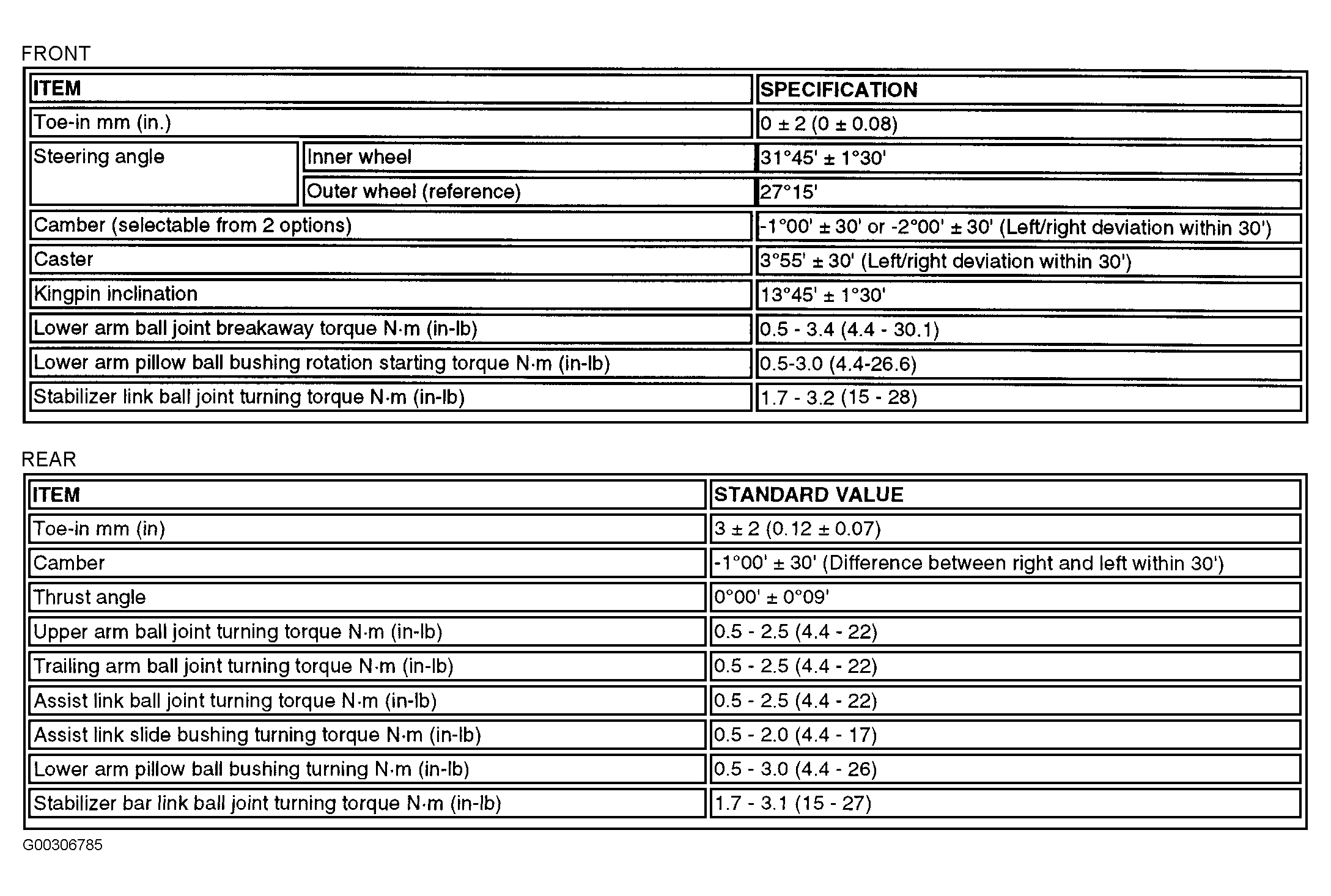 For wheel alignment specifications, see