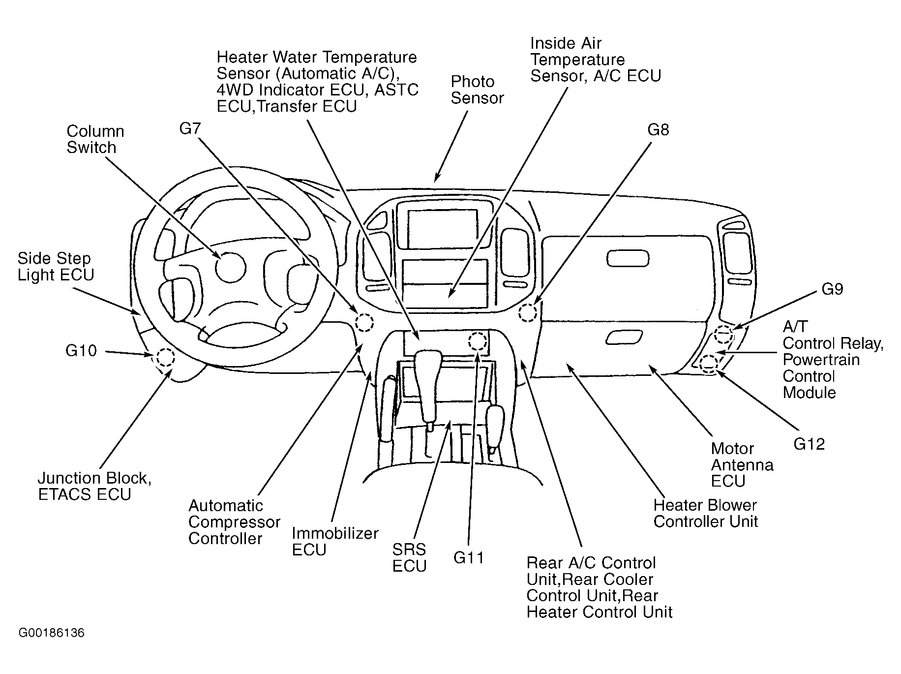 Behind lower left side of dash. See Figure. |