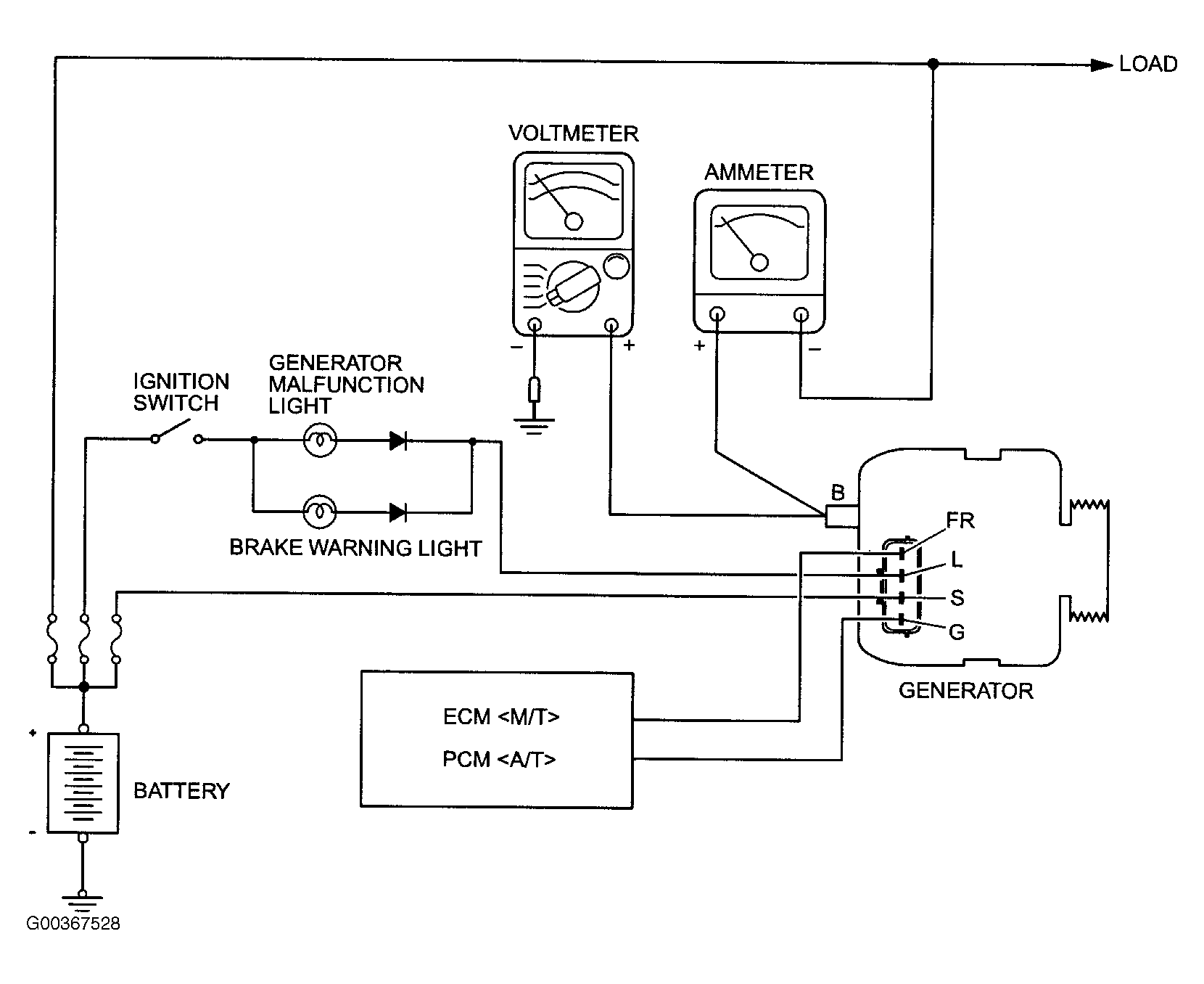 If the voltage is 0 V, the cause is probably an open circuit in the wire or fusible link between the generator B terminal and the battery positive terminal or malfunctioning voltmeter.