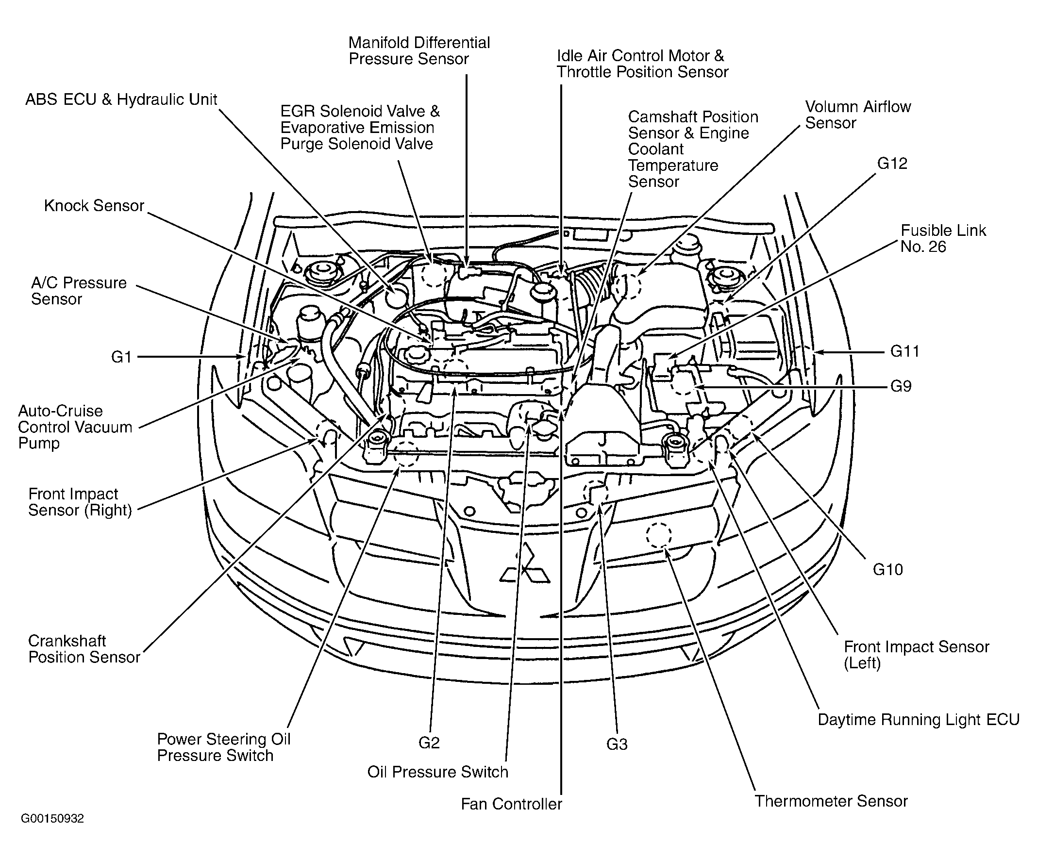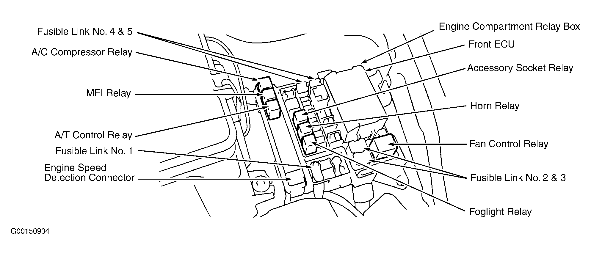 | Daytime Running Light ECU | At left front corner of engine compartment. See Figure . |