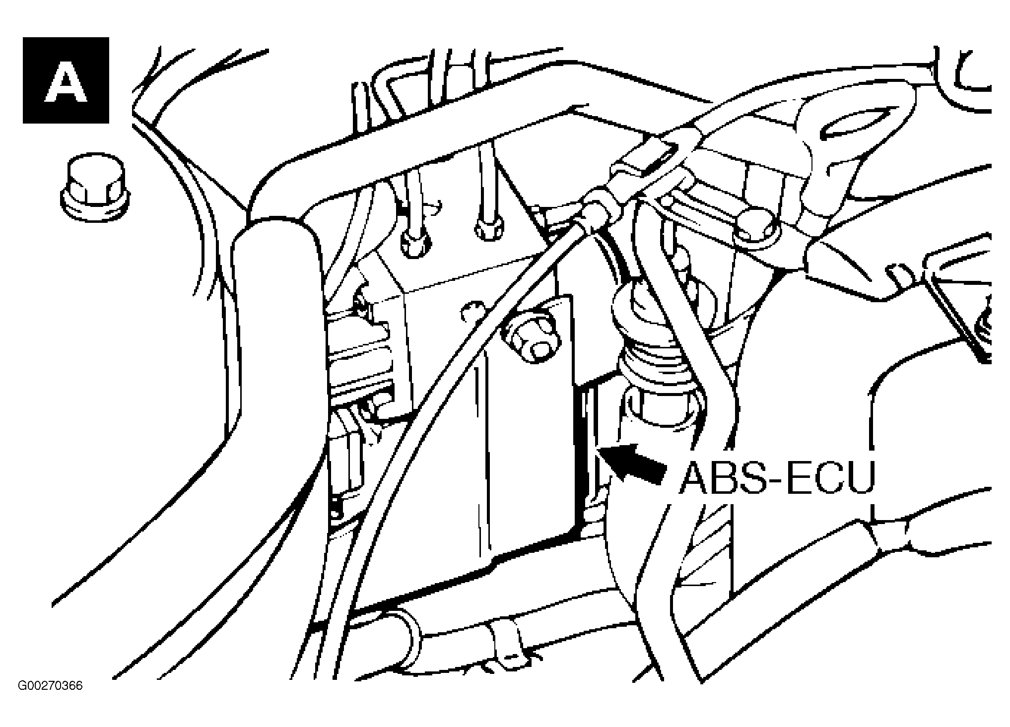 | ABS ECU | Right rear corner of engine compartment, on hydraulic unit. See Figure . |