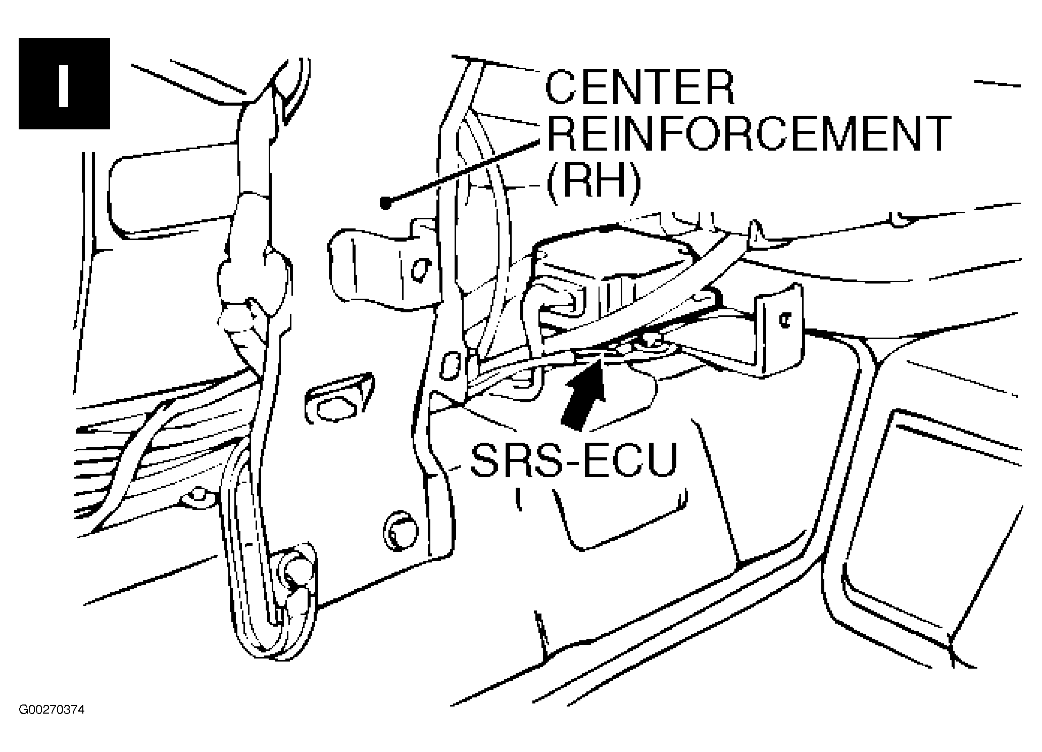 | SRS ECU | Behind lower center of dash, near center reinforcement. See Figure . |