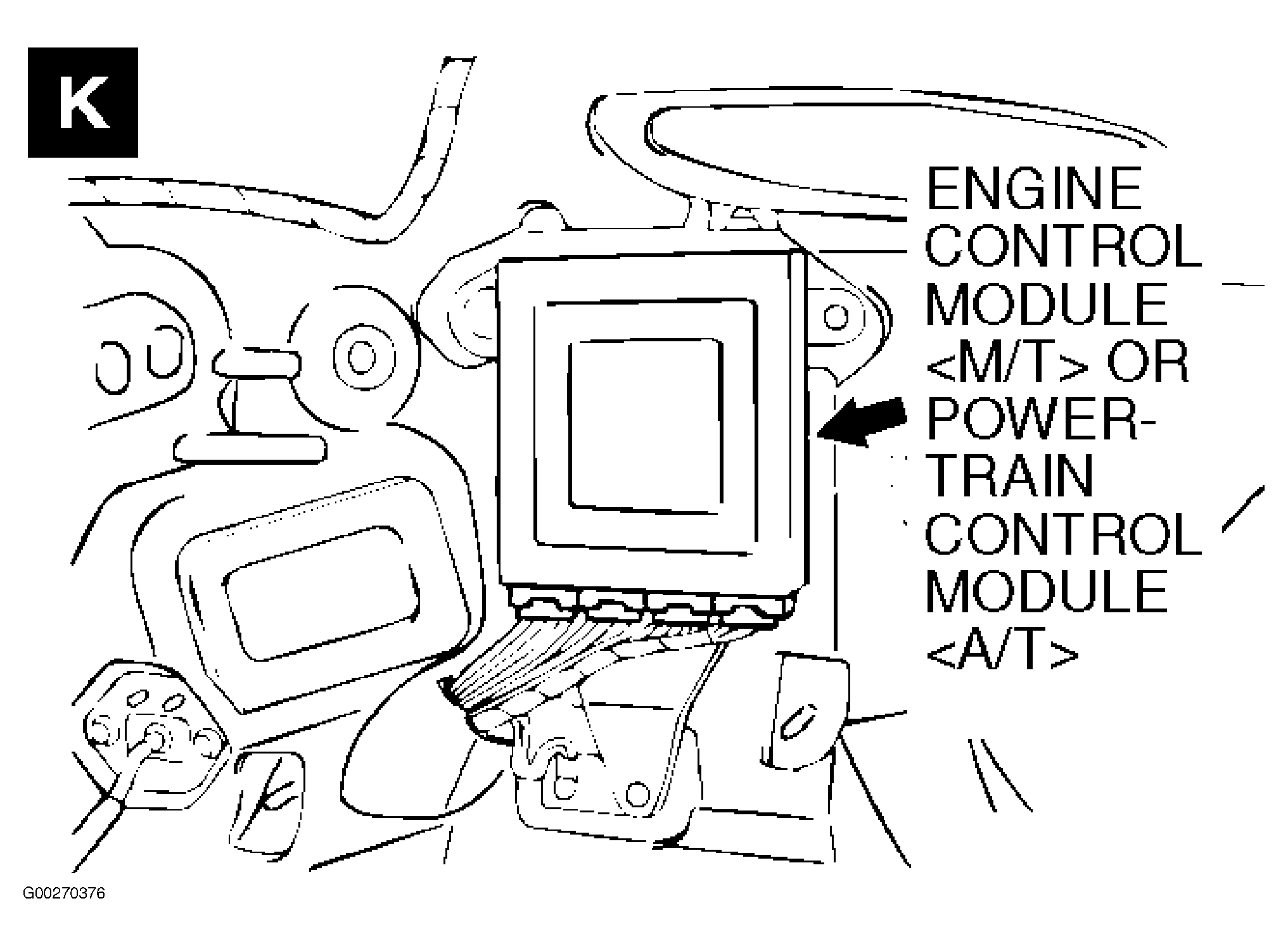 | Engine Control Module (M/T) | Behind right side of dash. See Figure . |