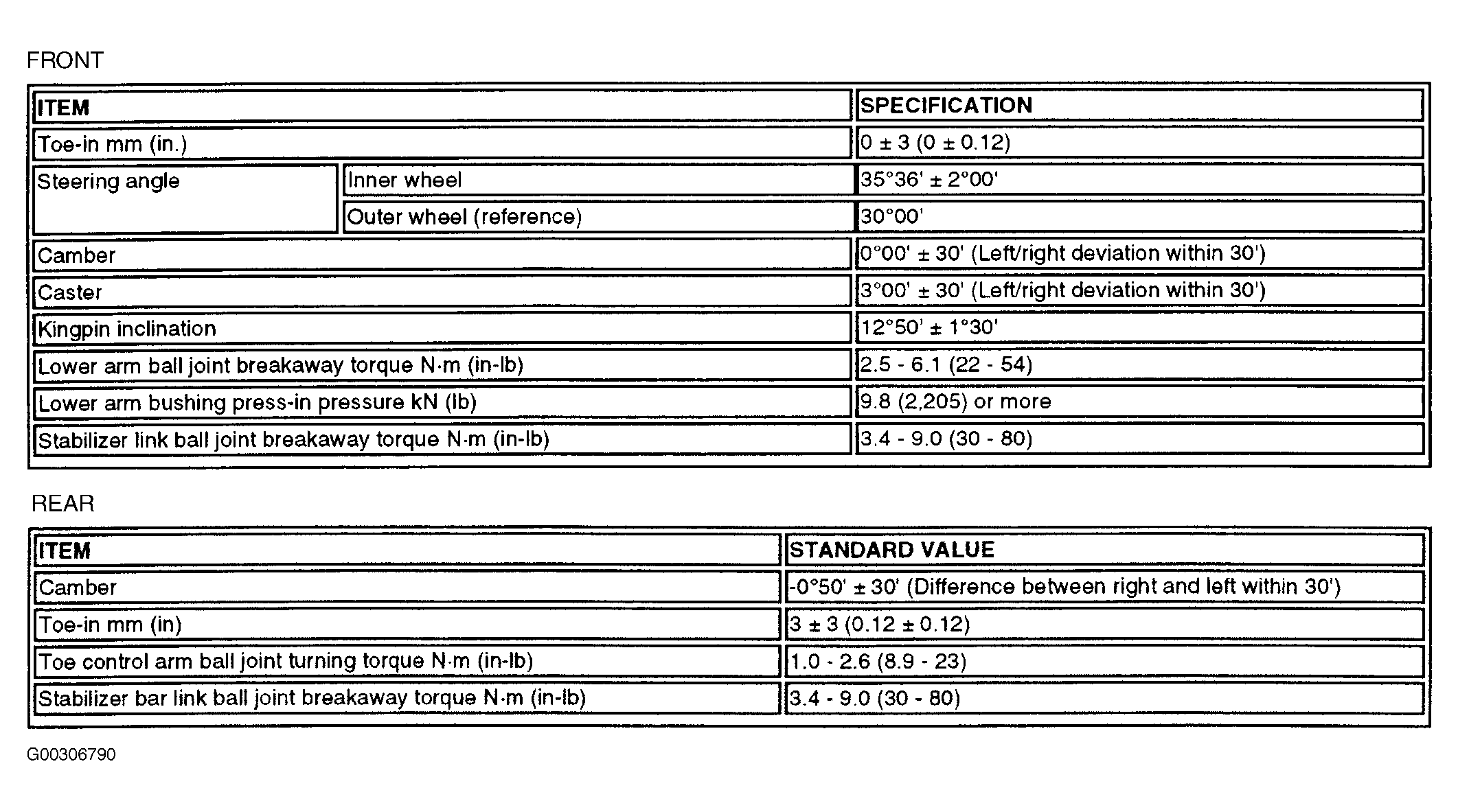 Wheel Alignment: Specifications: Specifications