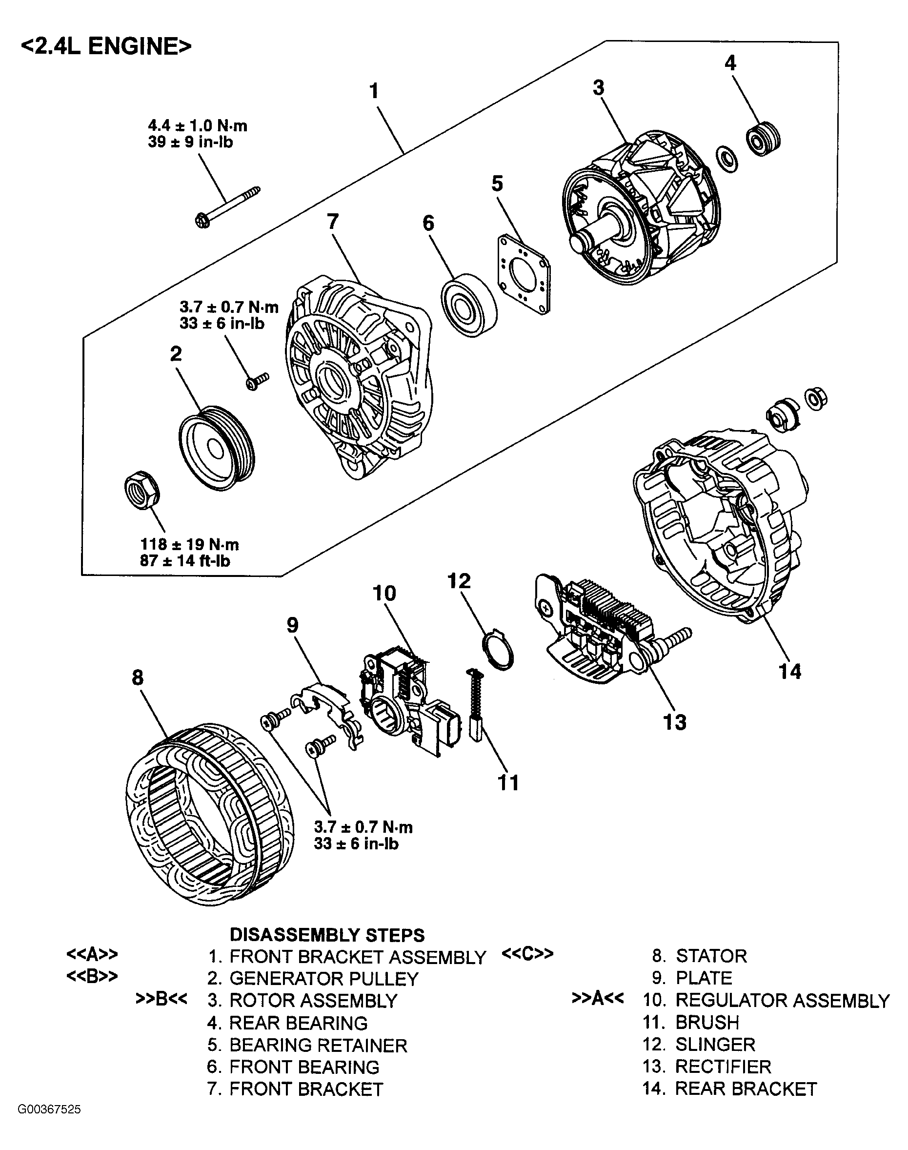 Fig 1: Exploded View Of Generator Disassembly & Assembly (2.4L)