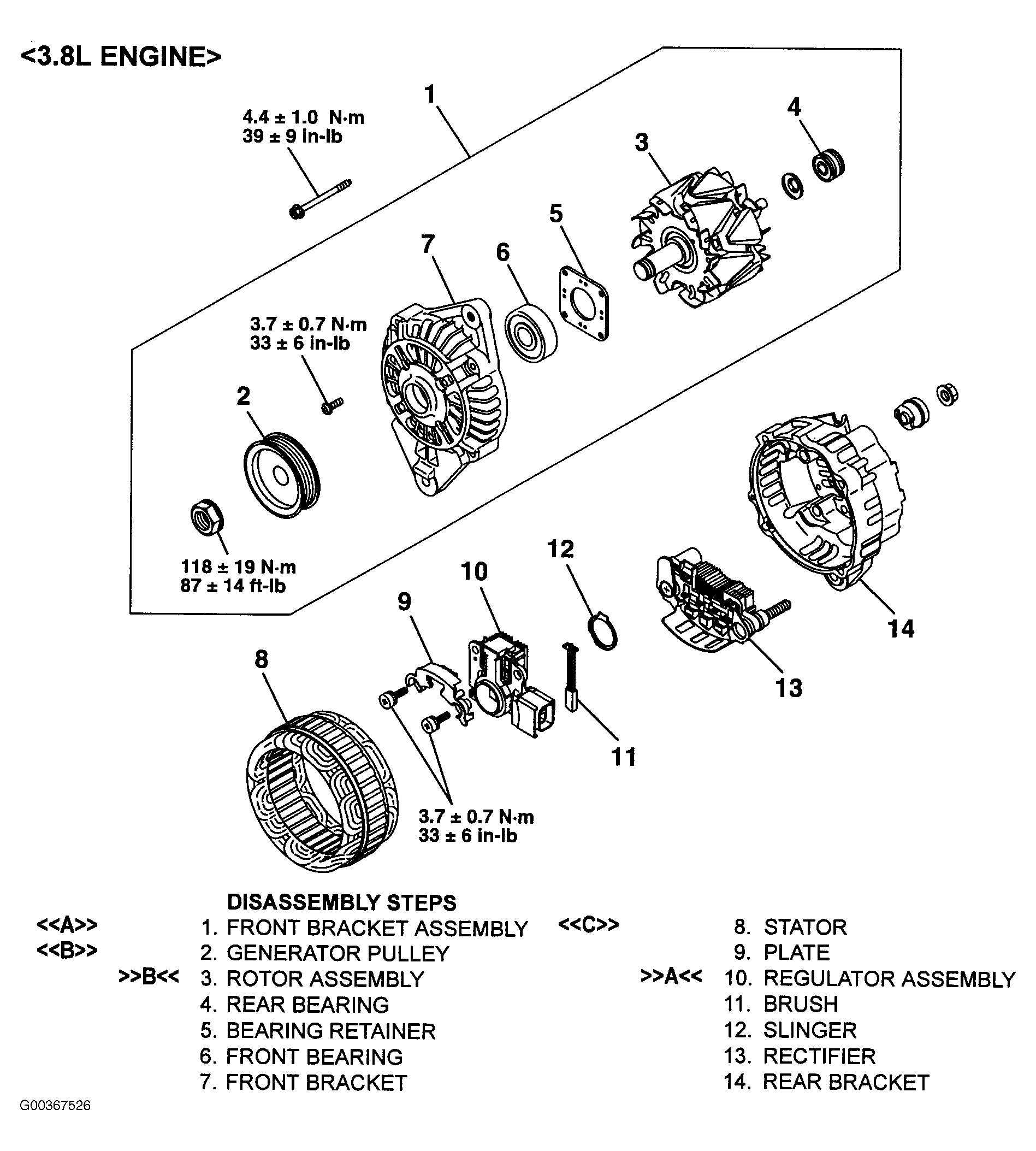 Fig 2: Exploded View Of Generator Disassembly & Assembly (3.8L)