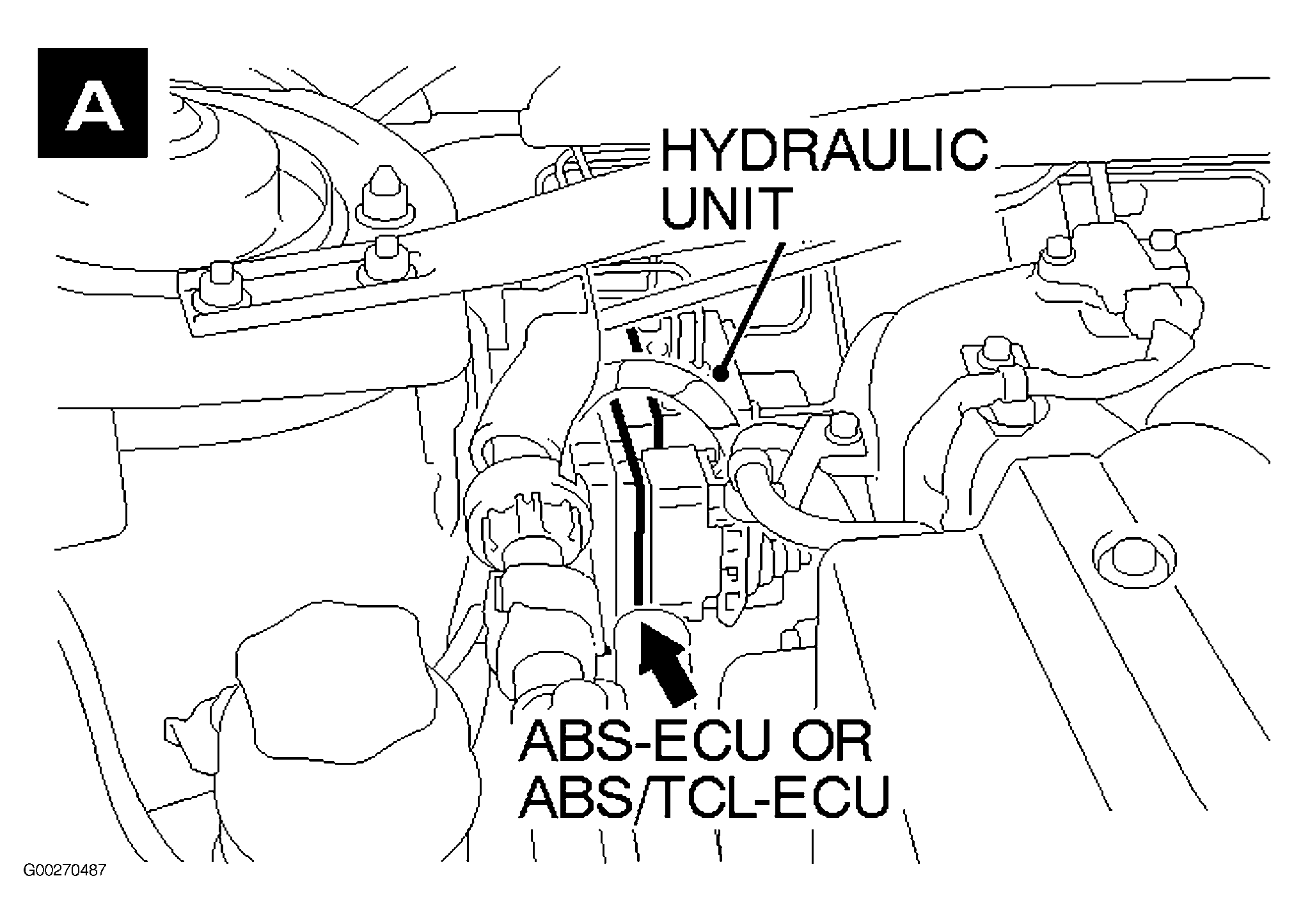 | ABS/TCL ECU | At right rear corner of engine compartment. See Figure . |